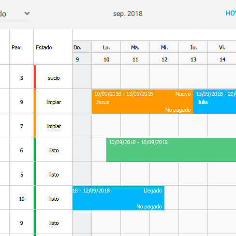 Calendario QML que te permite agregar una agenda gantt de reservas a tu aplicación Velneo, crea reservas con un solo click del ratón, arrastrando y soltando permitiendo a los usuarios gestionar el checkin y checkout de la reserva de una forma rápida e intuitiva.