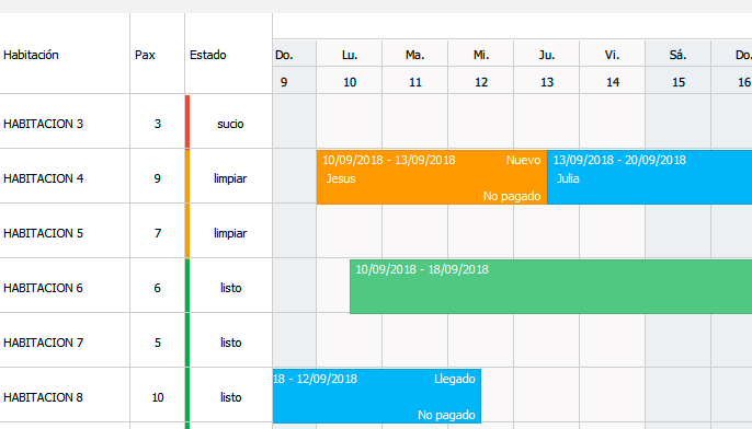 Calendario reservas habitaciones hotel